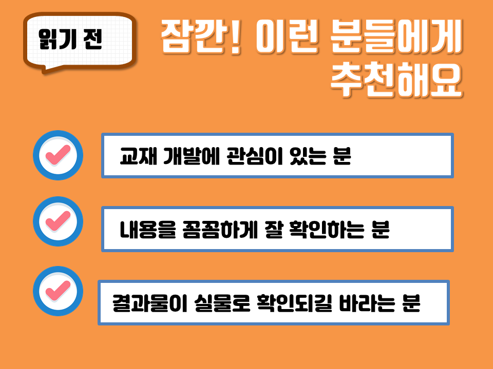 네, 여러분 어떠셨나요? 하나의 교재를 완성하기까지 상당한 노력이 드는 것 같아요.
