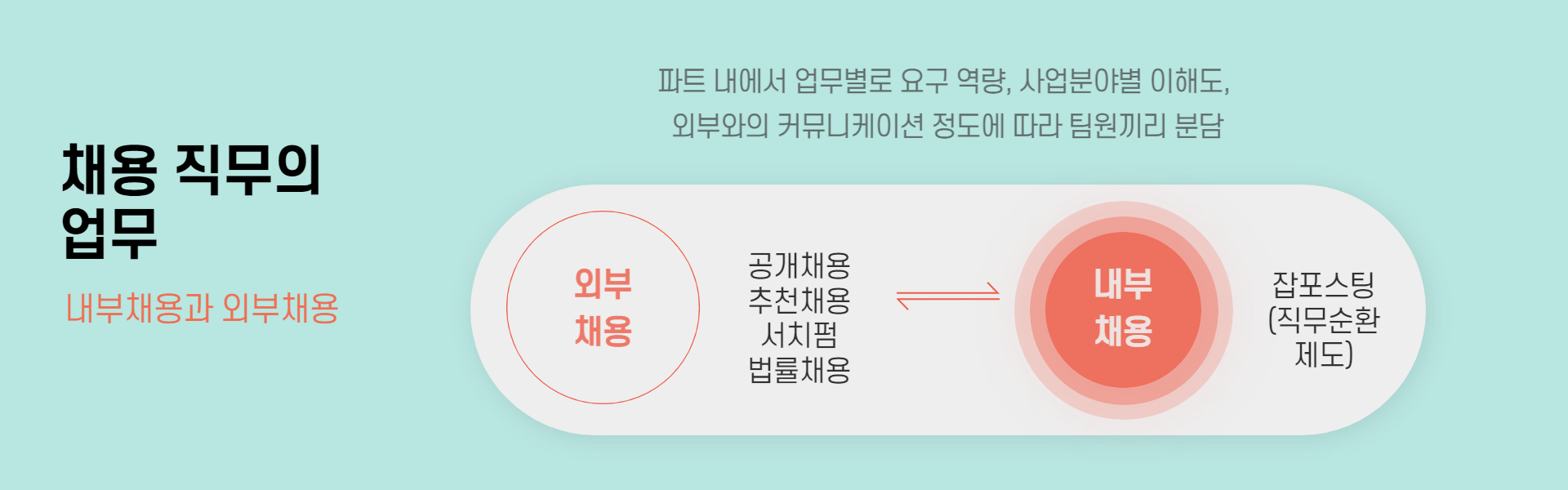 채용 직무에서는 크게 외부 채용, 내부 채용 두가지로 나누어 진행됩니다!